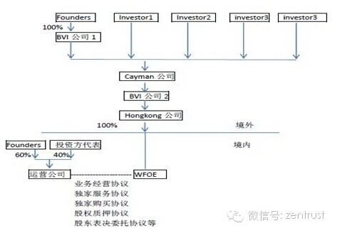 案件简介:国内某IT企业,投资方和创始人按照投资惯例建立VIE结构(如下图)。 该公司在运营管理过程中,投资方和创始人对公司股权结构和控制权产生分歧,双方对公司资金运用、重要人事任免发生冲突。公司的治理结构和权利分配机制遭到破坏,双方彼此不予以配合。最终,企业的经营遭受严重不利影响,投资方已经投入的巨额资金,难以实现退出。