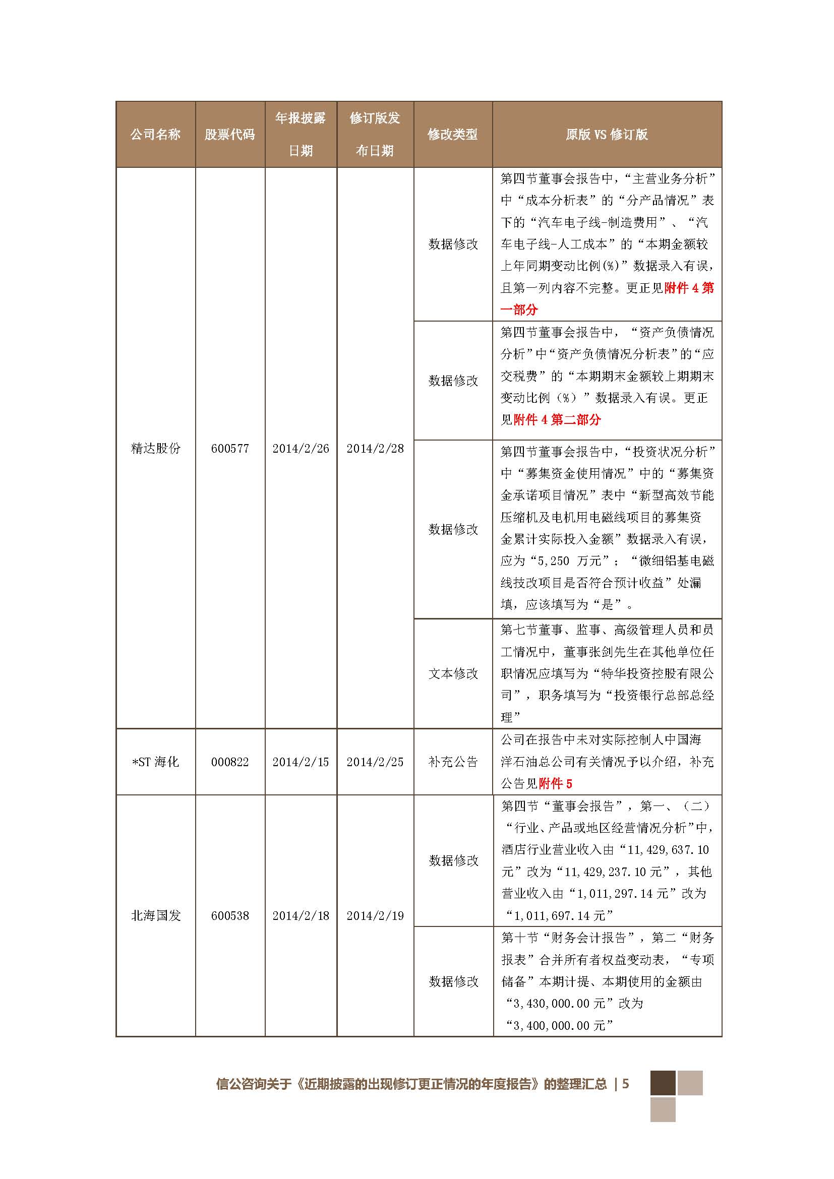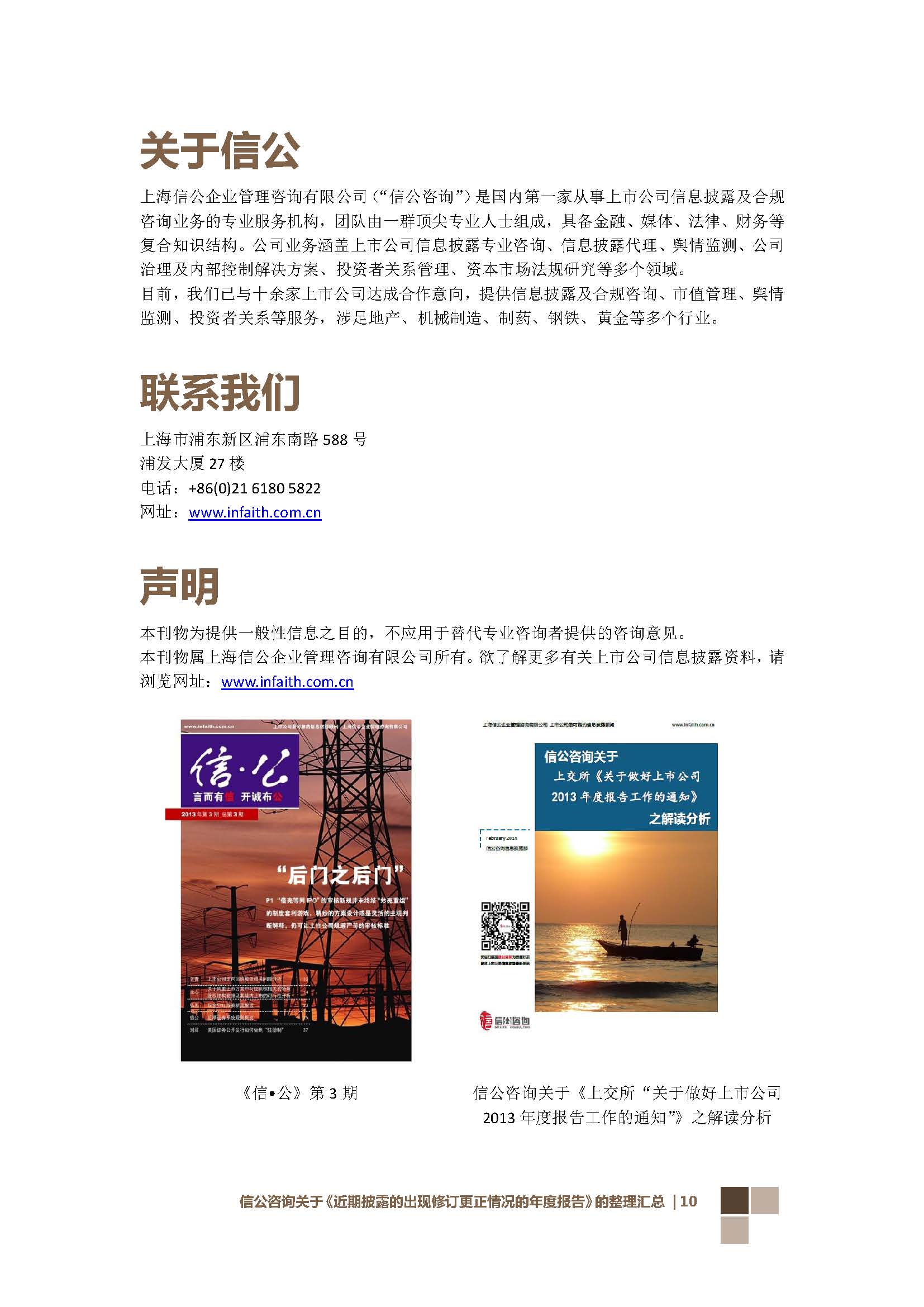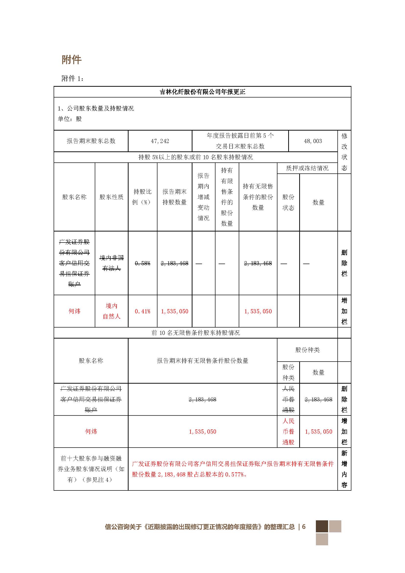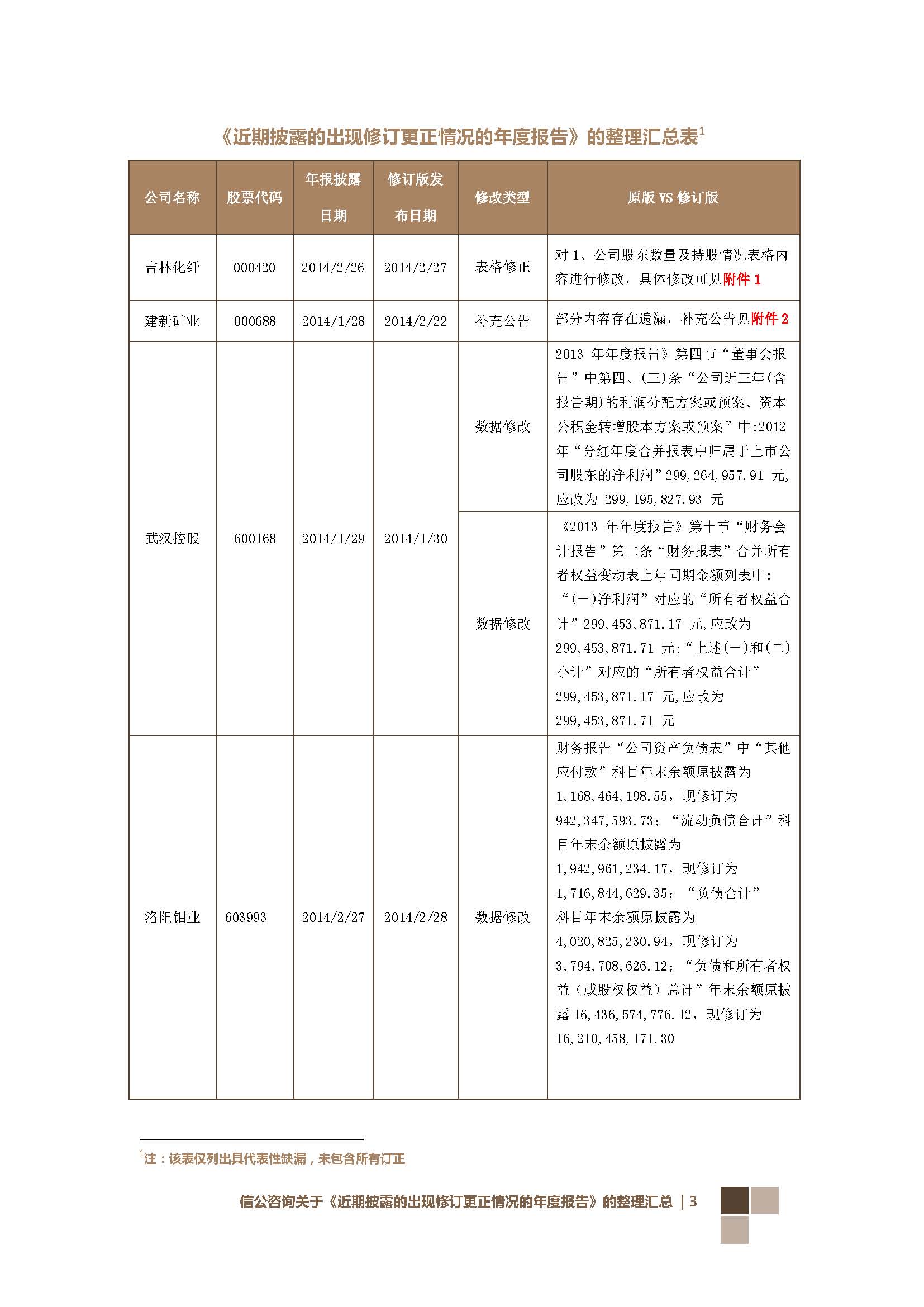 信公咨询关于近期披露的出现修订更正情况的年度报告的整理汇总