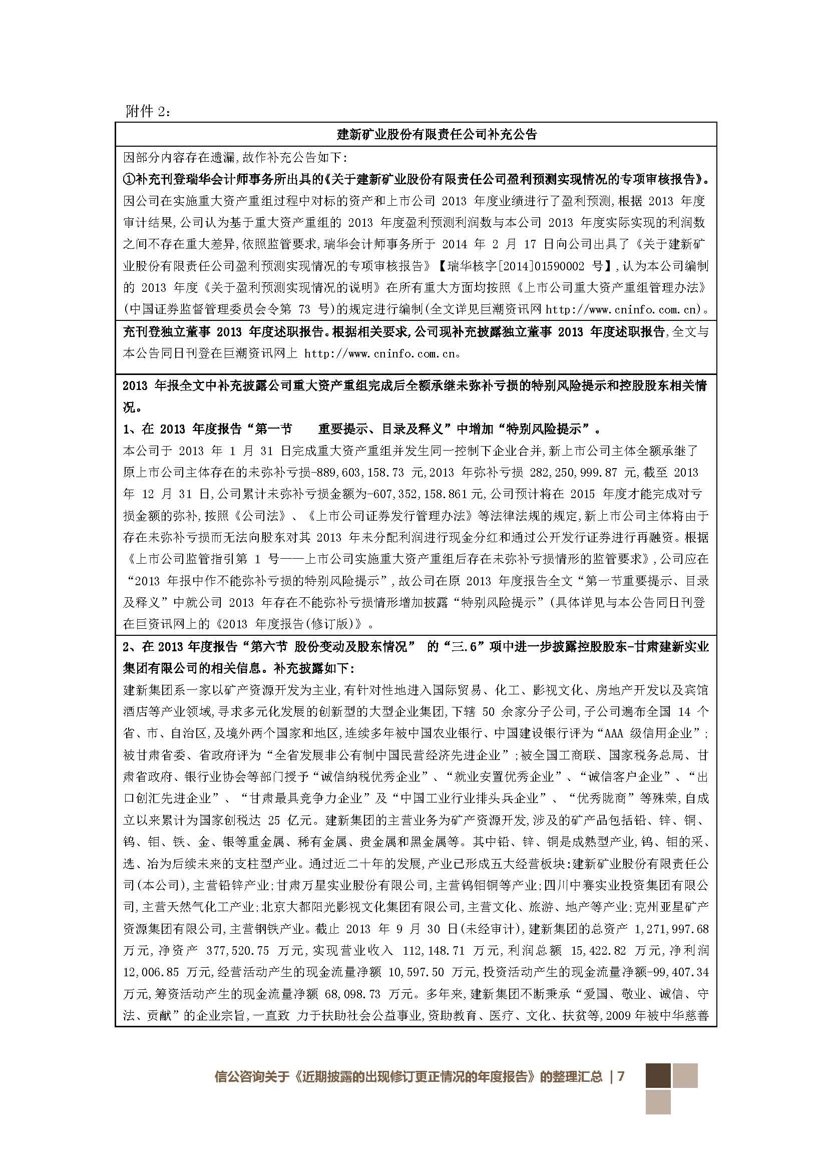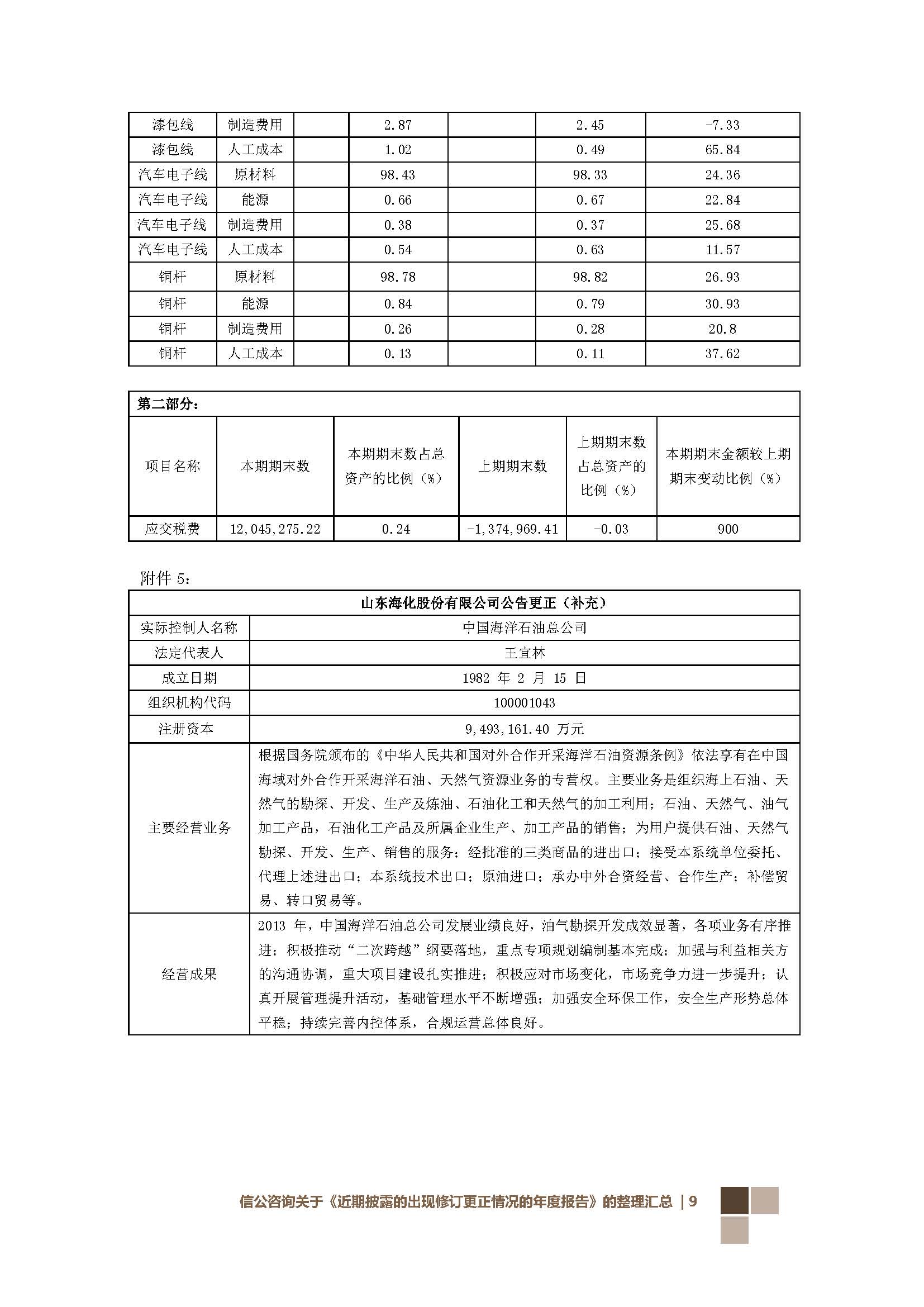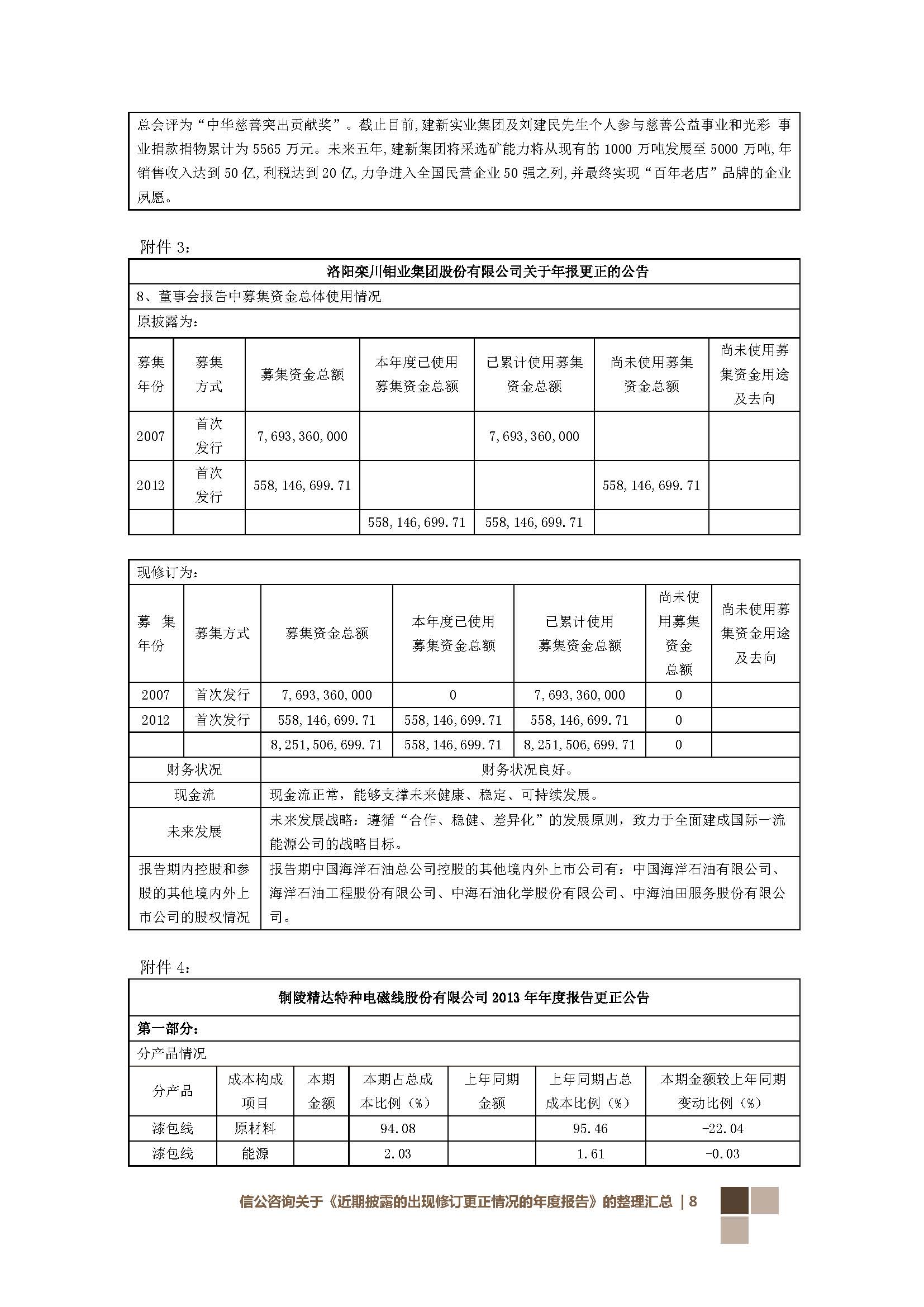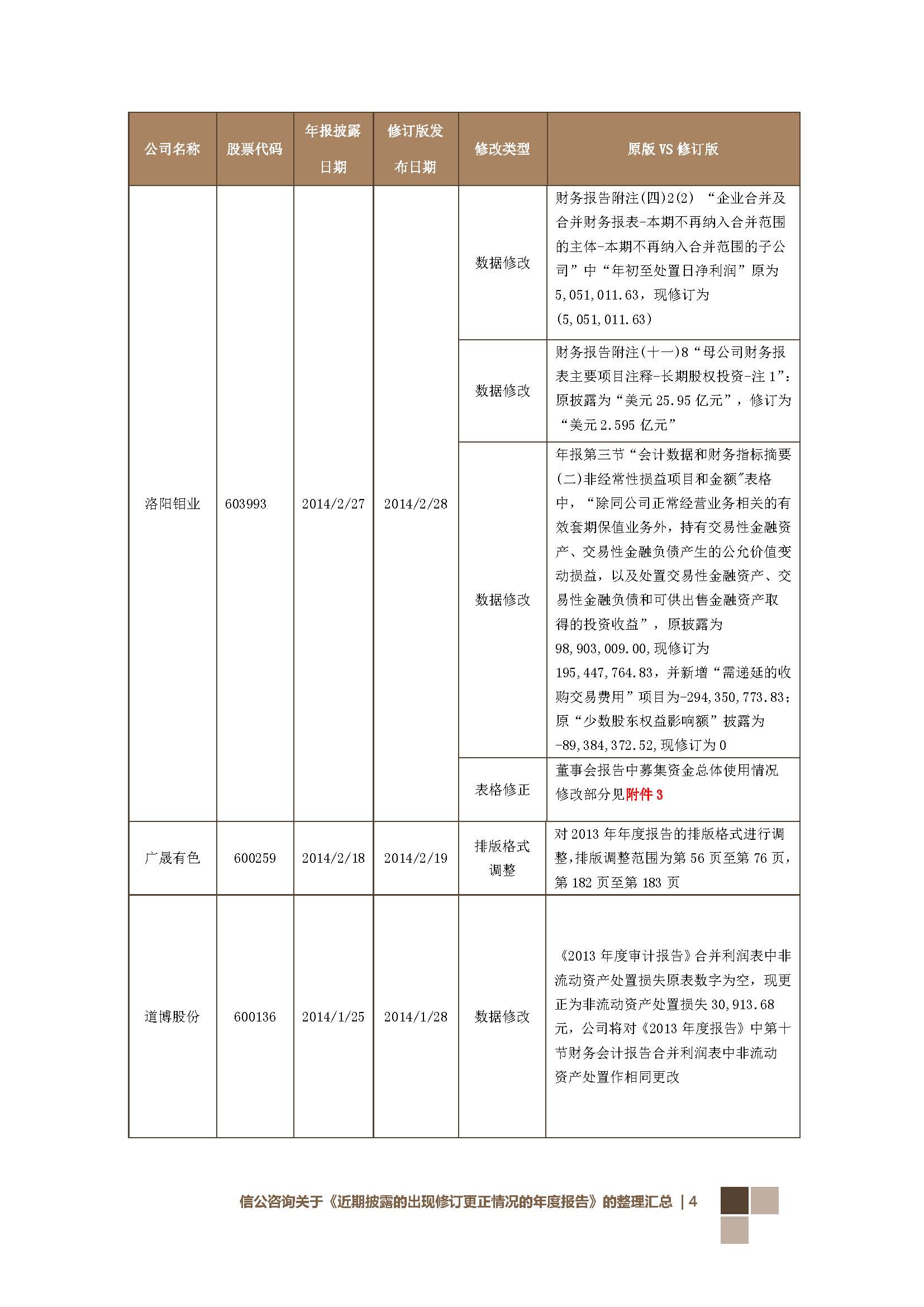 信公咨询关于近期披露的出现修订更正情况的年度报告的整理汇总