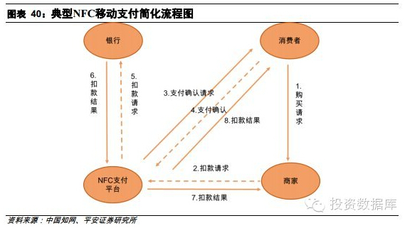 4)NFC于众多移动支付方式中独获官方力挺,政策环境极佳。2014年3月,央行下发《中国人民银行关于手机支付业务发展的指导意见》,对于部分支付机构通过手机二维码将支付账户或其关联银行账户用于实体特约商户现场交易的情形,央行给予一定观察期,暂时不在管理制度中承认其合法性;同时为鼓励商业银行拓展NFC手机近场支付应用,商业银行通过TSM平台空中发卡为客户开立银行账户的,如客户已柜台开立银行账户,则可采取非柜台方式进行客户身份核实,无需再履行柜台核实程序。