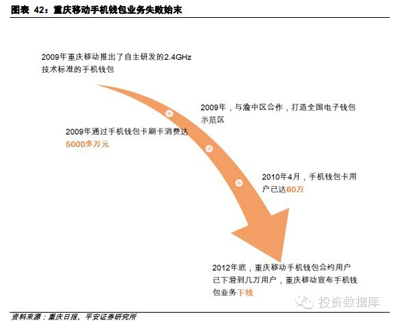 银行的野心未能实现。银行方面,也一直在积极尝试参与到移动支付产业链的各个环节。银行的最大优势是通过POS机终端牢牢掌控着商户,POS终端改造的推行相对容易;此外,为了也取得对用户的掌控,银行向用户发行带有NFC功能的SD卡,同时还独自成立第三方支付平台参与支付服务。然而,银行体系对手机的掌控力远不及运营商,因此在用户发展方面始终未取得成功的突破。