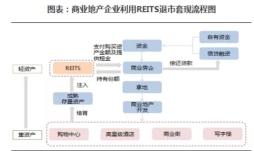 在REITS存在的情况下,商业地产行业的运转将出现精细化合作,不同风险偏好的资金将会流向商业地产运作的不同环节,进而实现资金的风险偏好与投资收益相匹配。追求高投资回报的房企将会负责商业地产的前期开发以及培育,然后将培育成熟的商业物业出售给REITS,实现退市套现,迅速回笼资金,提高了IRR,并且缩短了投资回报周期,而追求稳健收益的投资者将会通过持有REITS份额获得经营商业物业过程中的持续稳定的租金分红收益。