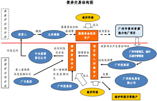 本期债券还本付息的首要资金来源是广州市第四资源热力电厂的运营收入,其中包括由广州市番禺区城市管理局和广州市南沙区城市管理局分别定期支付的垃圾处理费、由广州供电局有限公司支付的电厂发电收入等。广州市第四资源热力电厂所产生的运营收入将全部划入项目收入归集专户,该账户由监管银行监管。每当项目收入归集专户接收到本期债券募投项目所产生的收入时,项目实施主体应在3个工作日内将该笔收入中不低于当年偿债保证金留存比例的资金划转至偿债资金专户,该笔收入的剩余部分可由项目实施主体自由支配用于项目运营或其它方面。