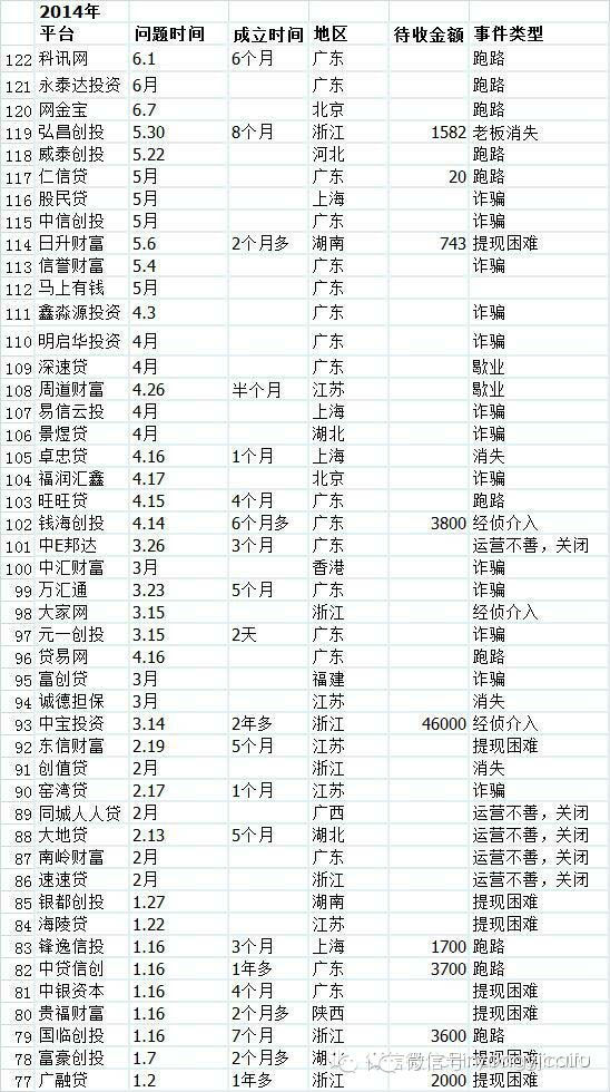 这时候,就需要我们睁大眼睛,投资前做好准备,降低中雷的几率。根据上述的统计资料,对出现问题平台的一些基本现象稍稍总结了下。