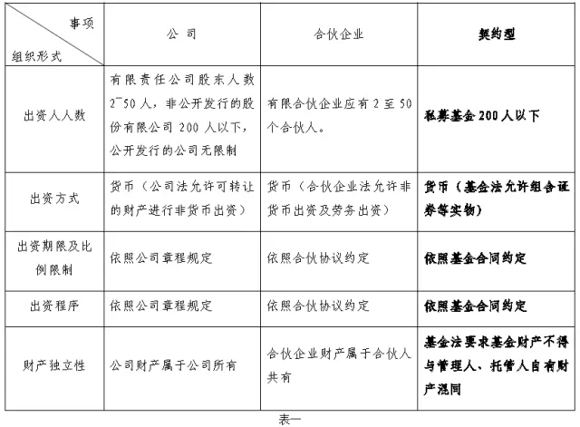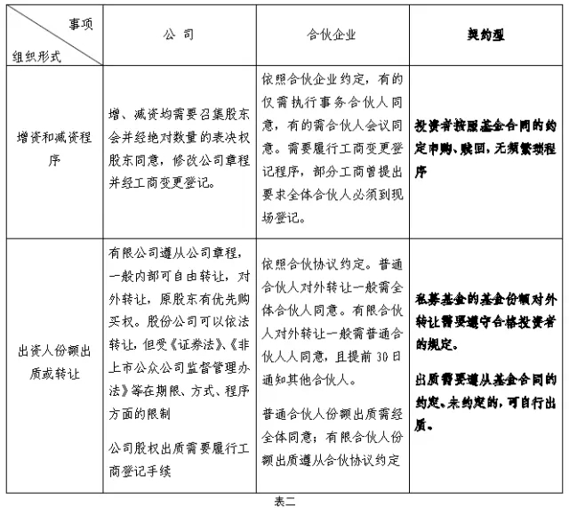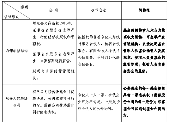 三、私募股权投资基金各组织形式比较(公司型、合伙型、契约型)