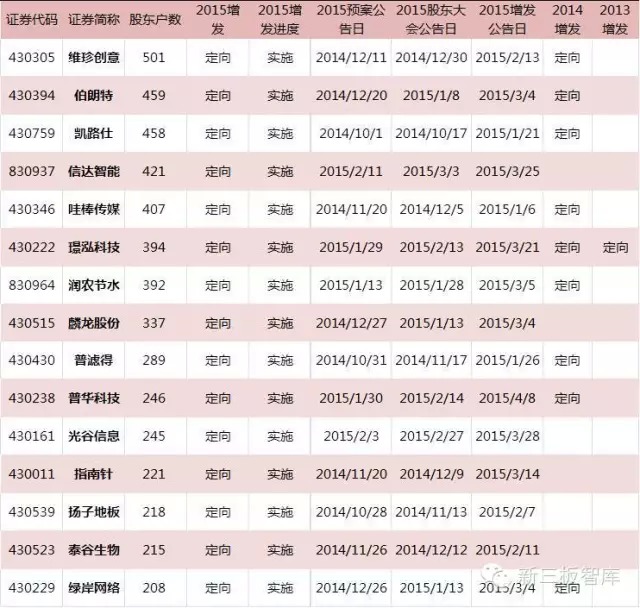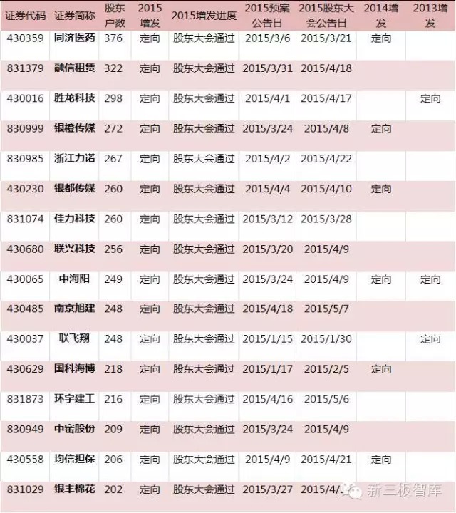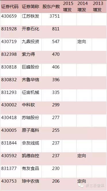 从wind资讯可知,截至目前新三板挂牌公司中股东人数已超过200人的公司有56家。如下图,其中有15家公司在2015年实施了定增,璟泓科技在近三年都有定增,也有维珍创意等8家企业在2014和2015年连续两年都有定增。