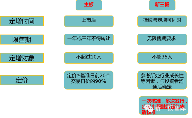 虽然股东超200人的公司发行定增要审核,但也比在主板定增要省事很多。下面让我们来对比看看新三板与主板的定增流程和所需时间。