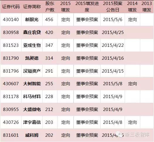 如下图,有10家公司2015年的定增方案是通过了董事会预案的,其中,大树智能和津宇嘉信在2014年也实施了定增。