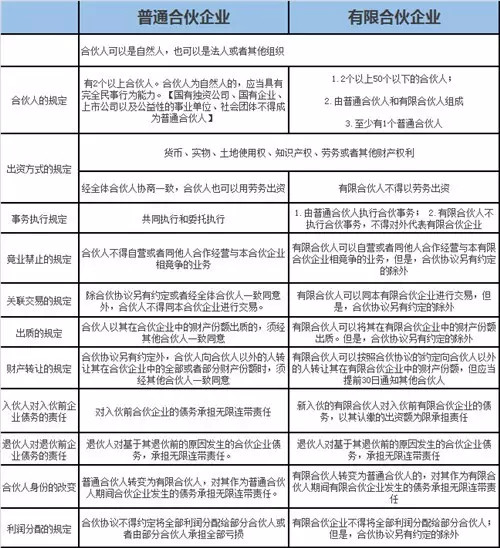 合伙企业是指自然人、法人和其他组织依照《中华人民共和国合伙企业法》在中国境内设立的企业,合伙企业分为普通合伙企业和有限合伙企业。根据《合伙企业法》(2007),普通合伙企业与有限合伙企业比较如下: